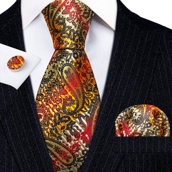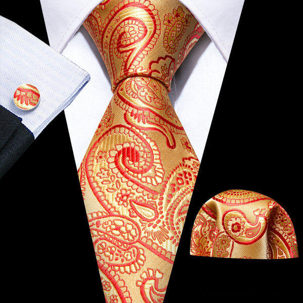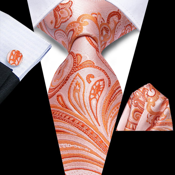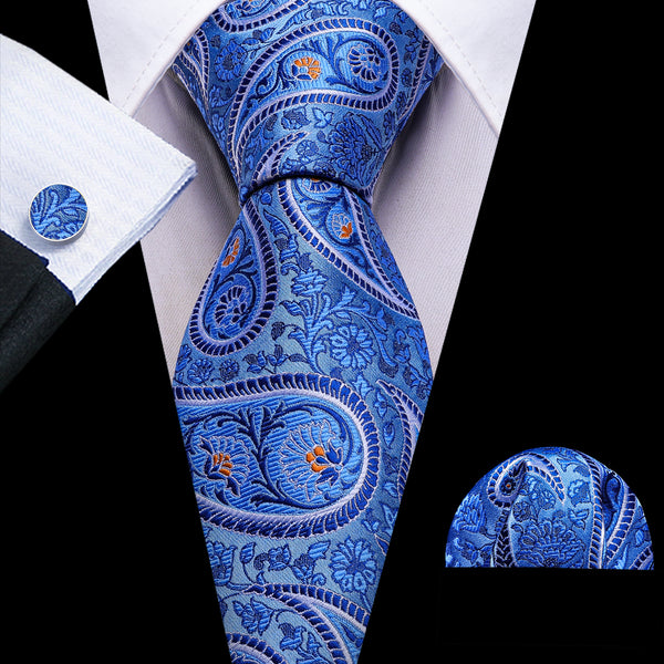 Orange Blue Paisley Men's Necktie Pocket Square Cufflinks Set