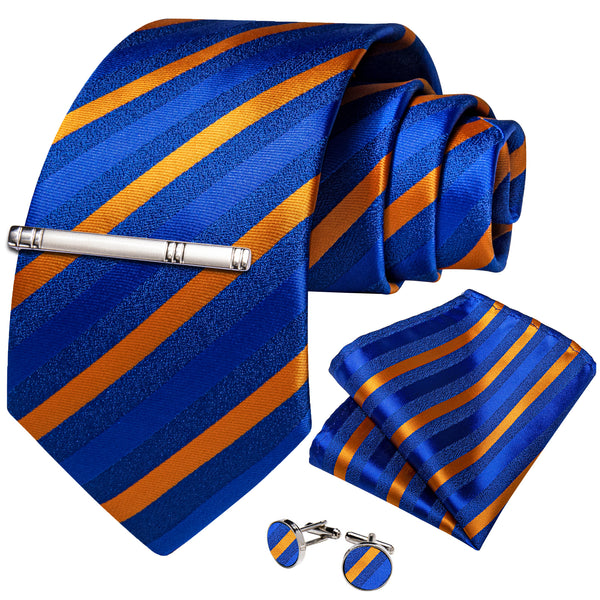 Ties2you Extra Long Tie Orange Blue Striped 70 Inches Silk Mens Dress Tie Set
