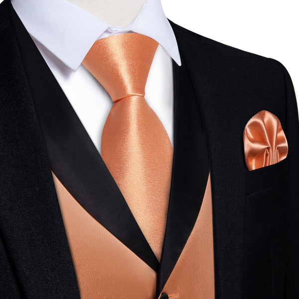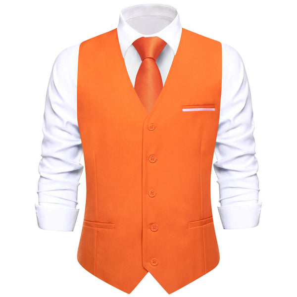 Vibrant Orange Solid Shining Silk Formal Men's Vest Hanky Cufflinks Tie Set