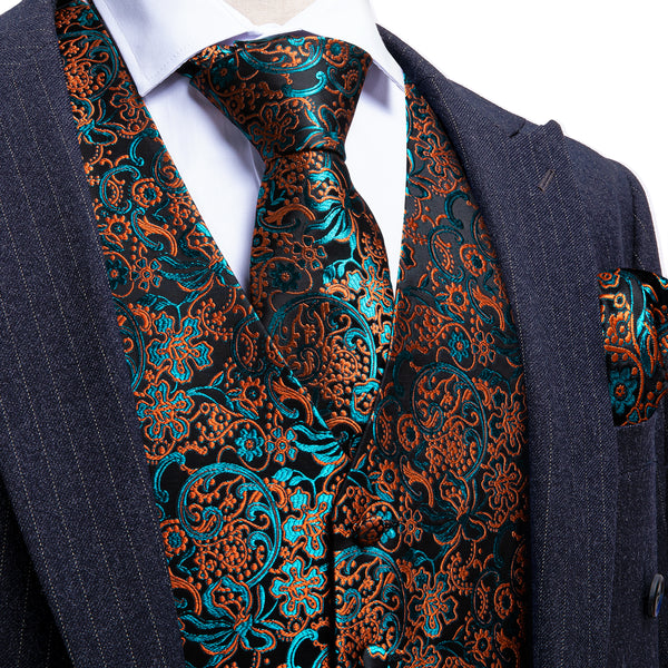 Ties2you Paisley Vest Rust Orange Jacquard Black V-Neck Vest Tie Set