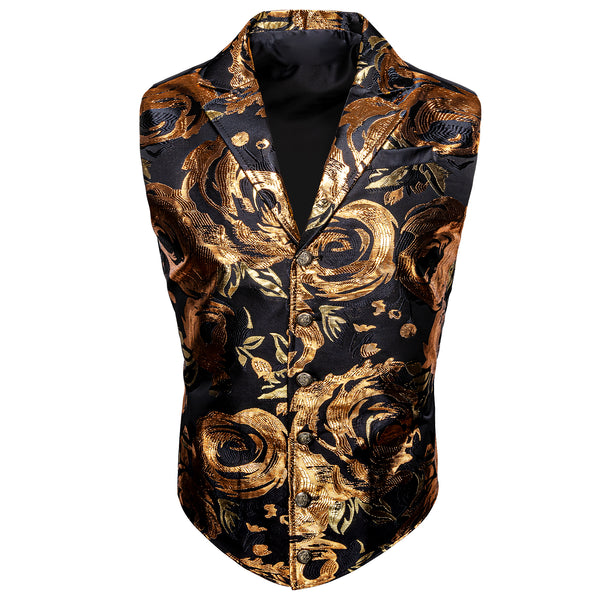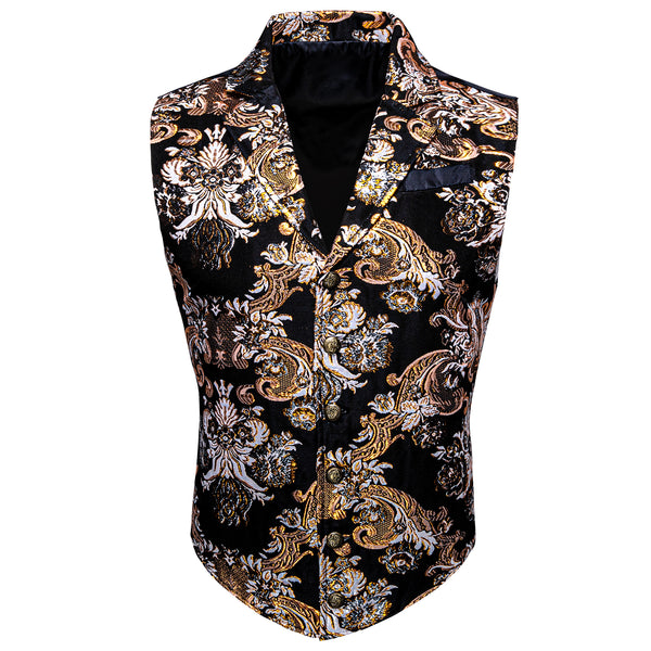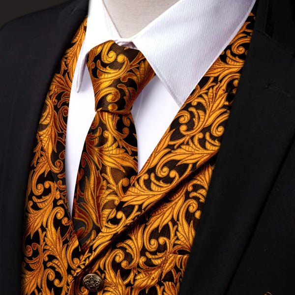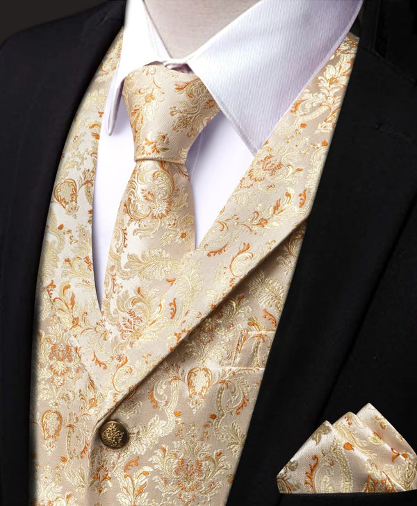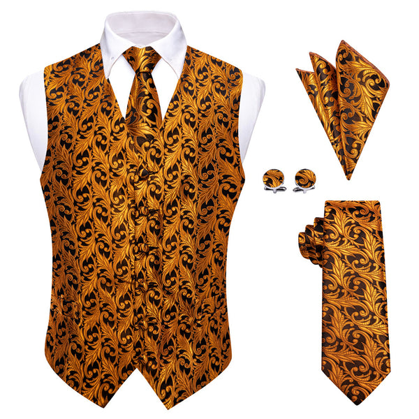 Ties2you Men's Casual Vest Orange Woven Floral Silk Notch Collar Vest