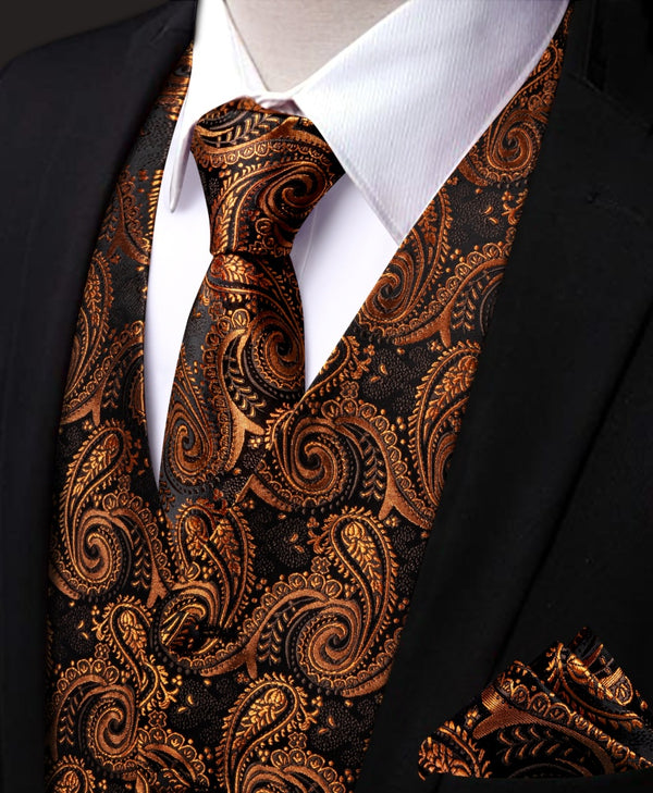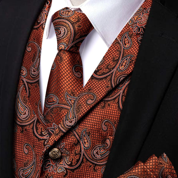 Ties2you Burnt Orange Suit Vest Paisley Business Formal Vest Tie Hanky Cufflinks Set