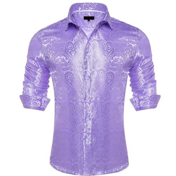 Ties2you Purple Shirt Casual Paisley Long Sleeve Silk Men's Shirt For Party