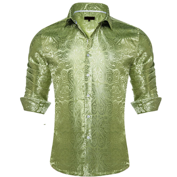 Green Paisley Style Silk Men's Long Sleeve Shirt