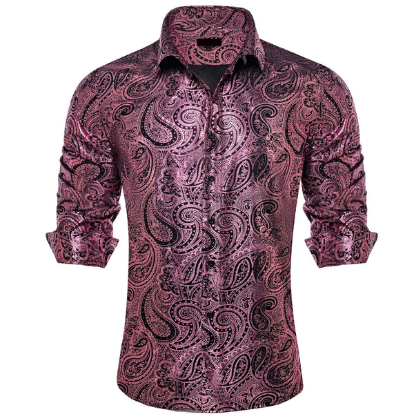 Red Black Paisley Silk Men's Long Sleeve Shirt