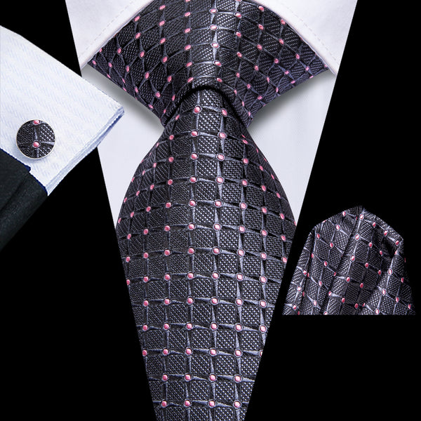 Ties2you Polka Dots Tie Pink Grey Silk Men's Tie Handkerchief Cufflinks Set