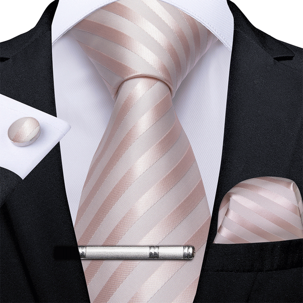Ties2you Pink Tie Rose Pink Striped Mens Silk Necktie Pocket Square Cufflinks Set