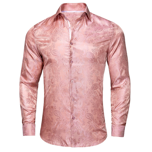 Ties2you Blush Pink 70s Disco Long Sleeve Button Down Shirt Mens Paisley Dress Shirt