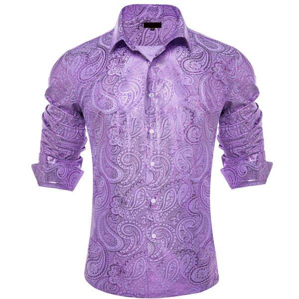 Ties2you Purple Shirt Casual Paisley Long Sleeve Silk Men's Shirt For Party