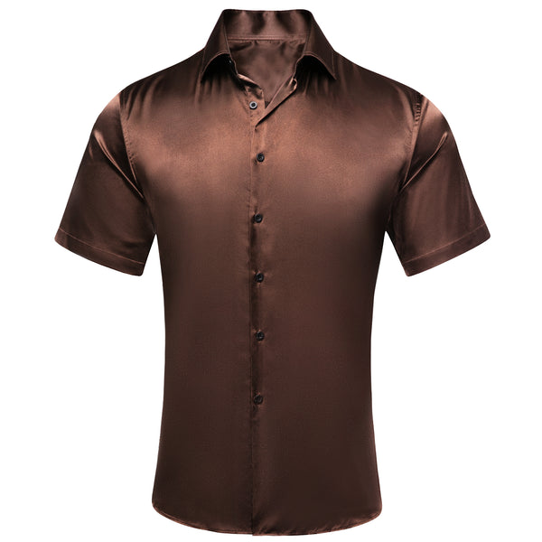 Ties2you Brown Satin Dress Shirts Mens Solid Long Sleeve Button Down Formal Shirt