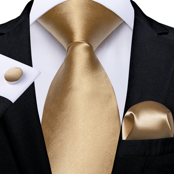 2PCS Golden Satin Solid Men's Necktie Hanky Tie Set
