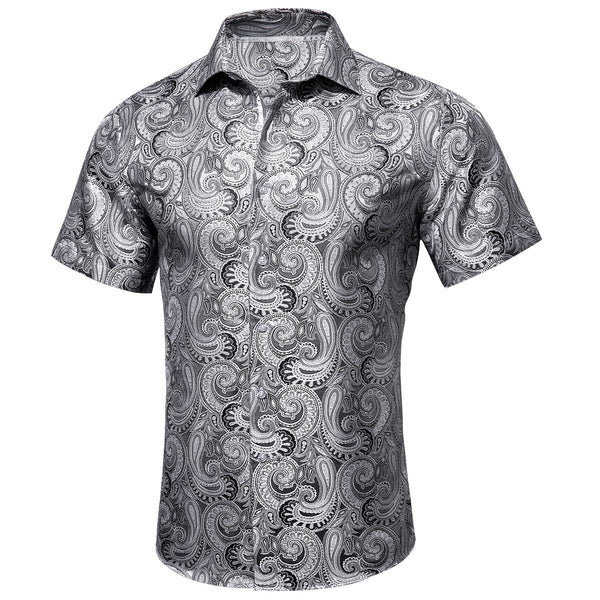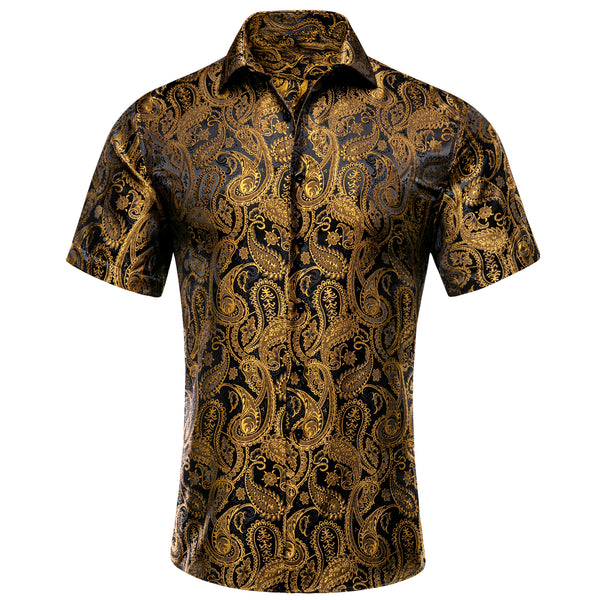 Splicing Style Black with Brown Paisley Silk Men's Short Sleeve Shirt