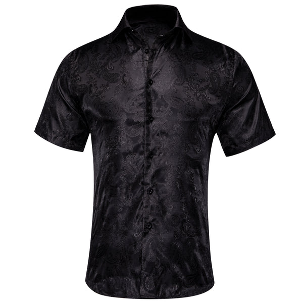 Splicing Style Black with Red Paisley Silk Men's Short Sleeve Shirt