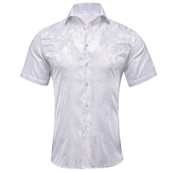 Pearl White Pink Floral Men's Short Sleeve Summer Shirt