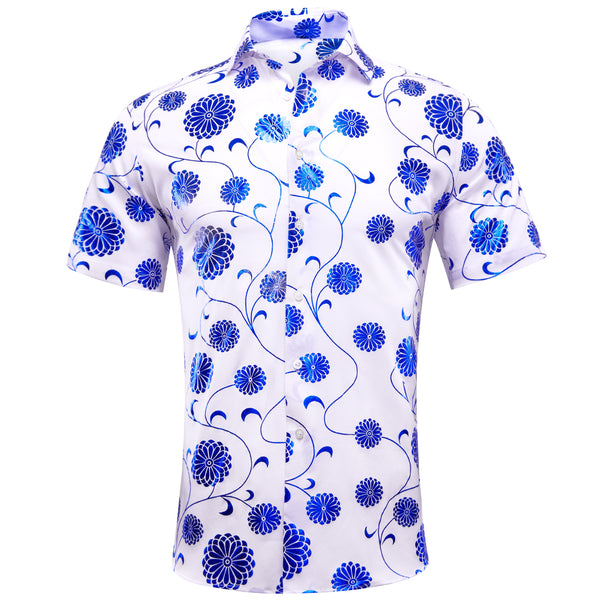 Blue Beige Floral Men's Short Sleeve Summer Shirt