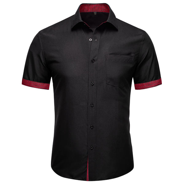 Splicing Style Black with Red Paisley Silk Men's Short Sleeve Shirt