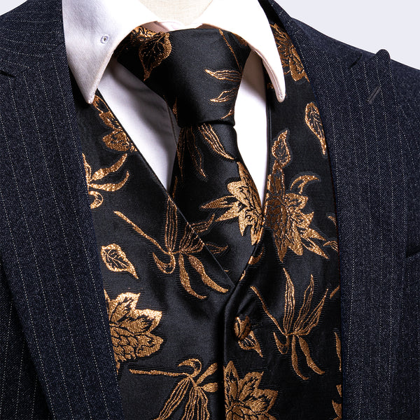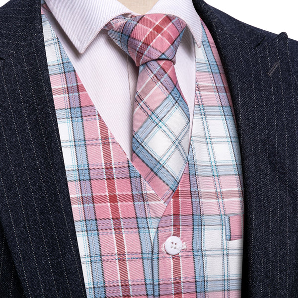 Baby Pink Floral Jacquard Silk Men's Vest Hanky Cufflinks Tie Set