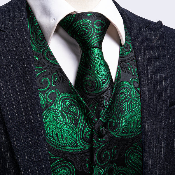 Apple Green Floral Woven Luxury Men's Vest Hanky Cufflinks Tie Set