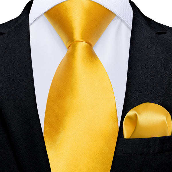 2PCS Golden Satin Solid Men's Necktie Hanky Tie Set