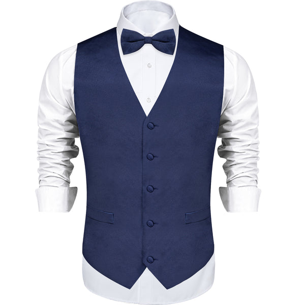 Ties2you Vest for Men Satin Navy Blue Solid Men's Vest Bow Tie Set