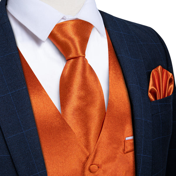 Brilliant Orange Solid Shining Silk Men Vest Necktie Bow Tie Handkerchief Cufflinks Set