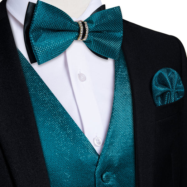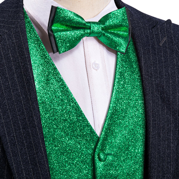 Shining Green Glitter Solid Jacquard Silk Men's Vest Bow Tie Set Waistcoat Suit Set