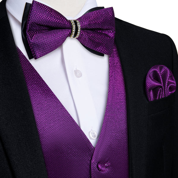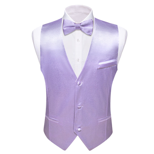 Thistle Purple Solid Jacquard Silk Men's Vest Bow Tie Set Waistcoat Suit Set