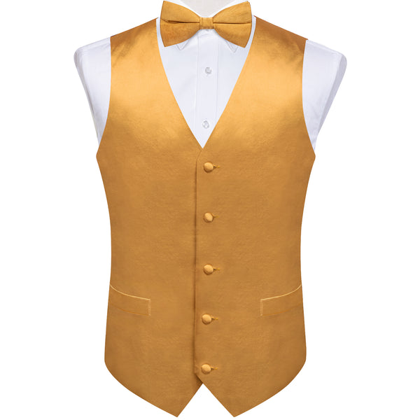 Ties2you Men's Vest Orange Solid Silk Vest Bow Tie Set Waistcoat Suit Set