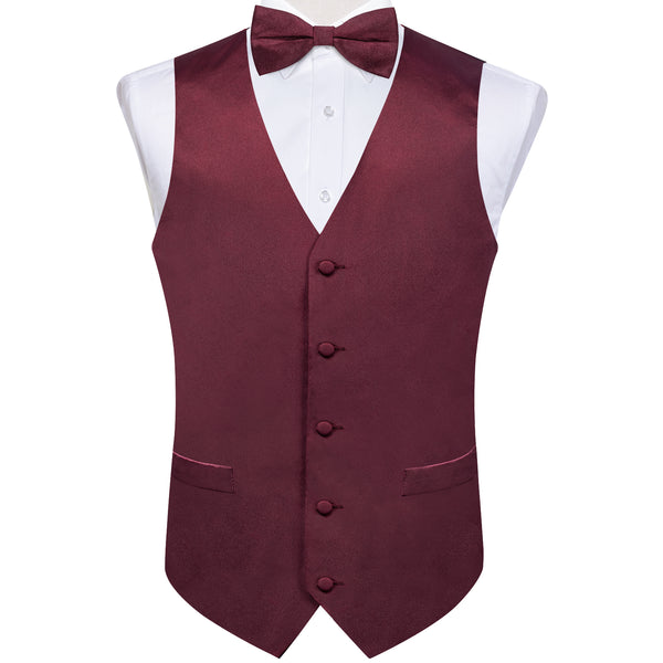 Satin Burgundy Red Solid Men's Vest Bow Tie Set