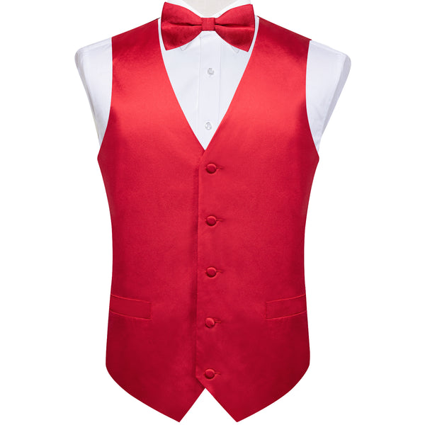 Satin Classic Red Solid Men's Vest Bow Tie Set