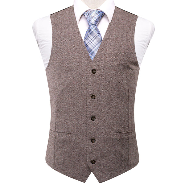 Ties2you Mens Brown Suit Vest Solid V-neck Vest Necktie Necktie Pocket Square Cufflinks Set