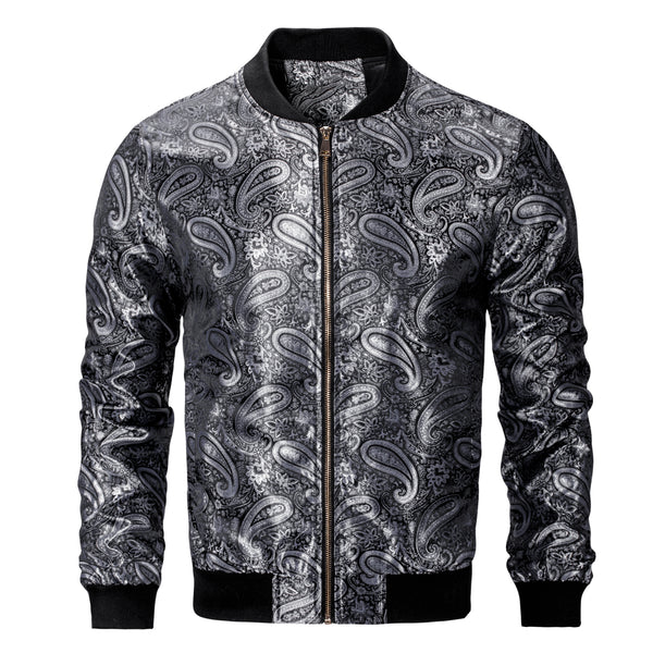 Black Gradient Silver Paisley Self-tied Bow Tie Pocket Square Cufflinks Set