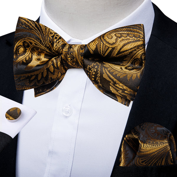 Ties2you Black Gold Novelty Pattern Mens Pre-tied Bowtie Feather Bow Ties