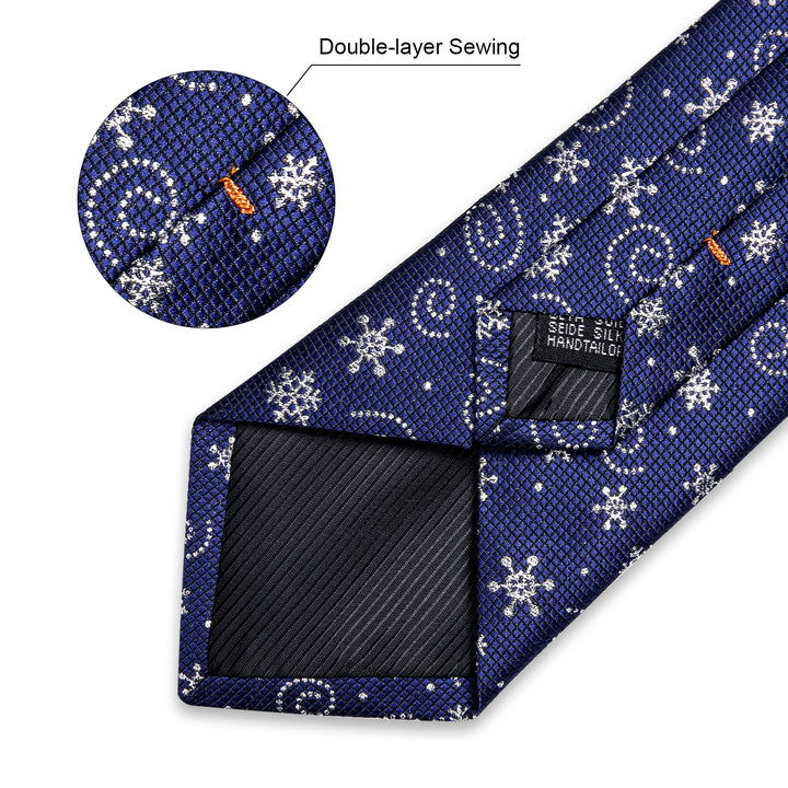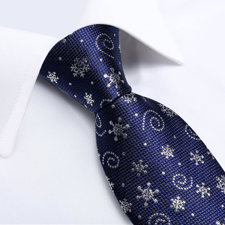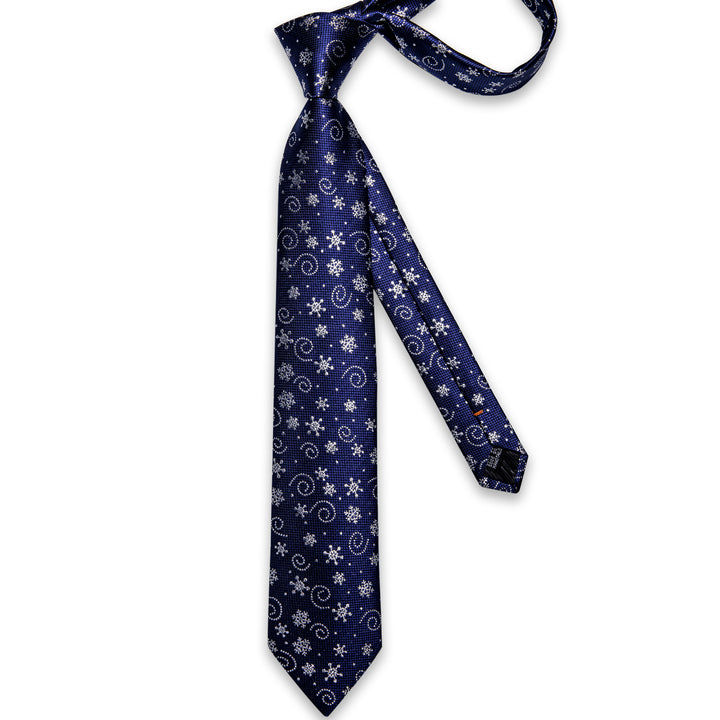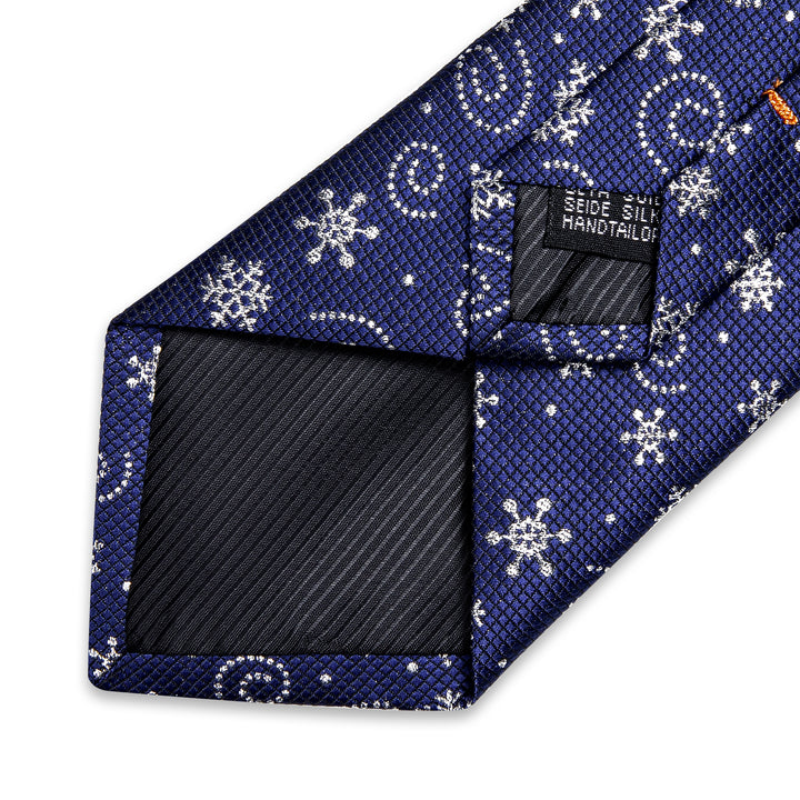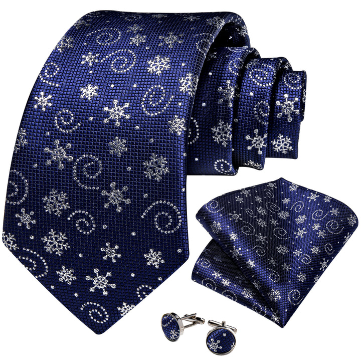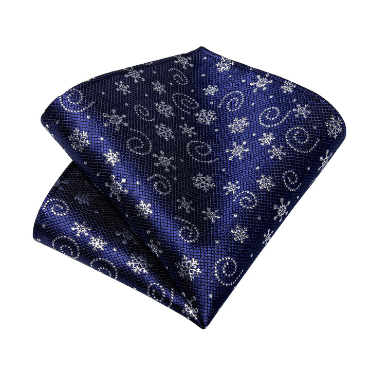 Christmas Royal Blue Snow Novelty Men's Necktie Pocket Square Cufflinks Set