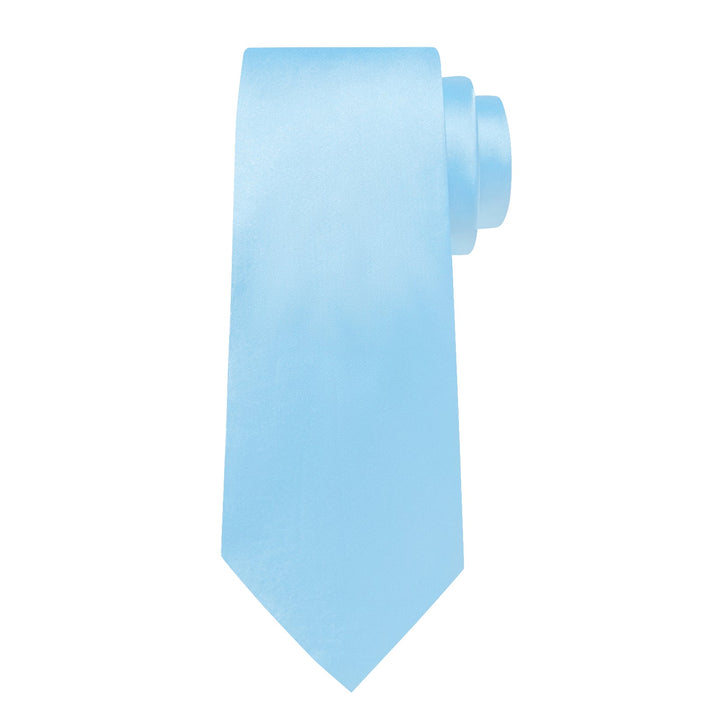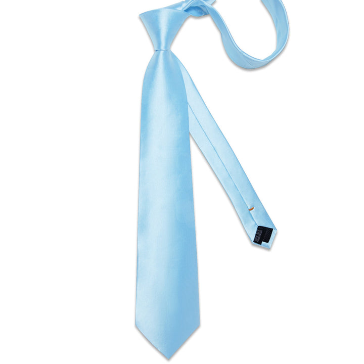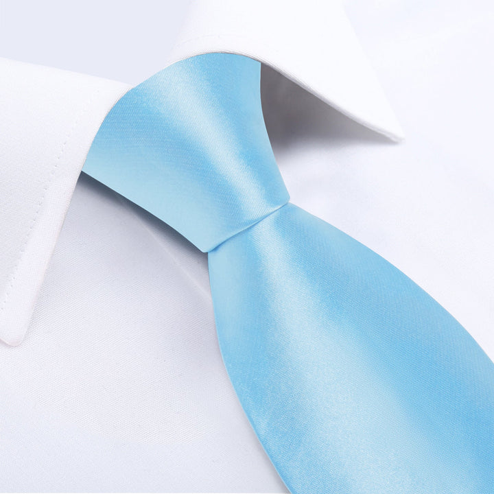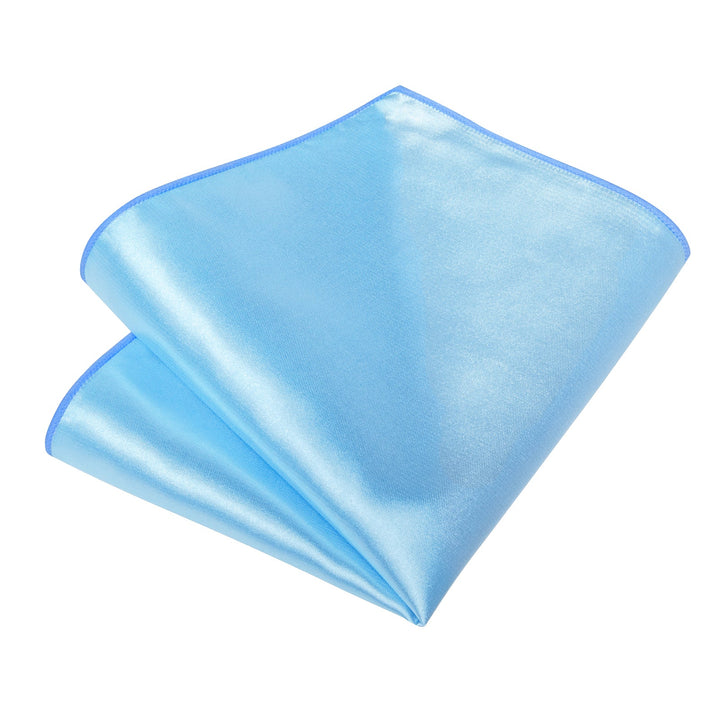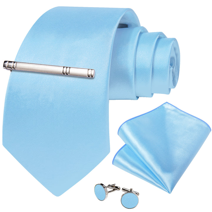 Arctic Blue Solid Silk Men's Necktie Pocket Square Cufflinks Set with Clip