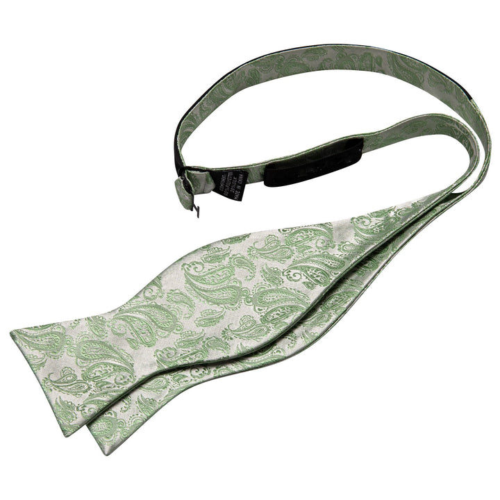 Ties2you Sage Green Paisley Bowtie Self-tie Bow Tie Handkerchief Cufflinks Set