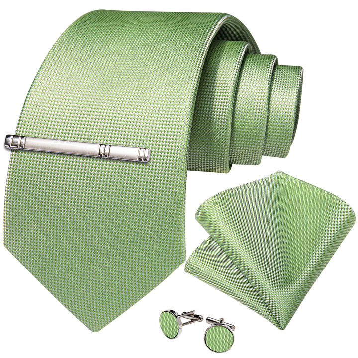 Avocado Green Plaid Silk Men's Necktie Pocket Square Cufflinks Set with Clip