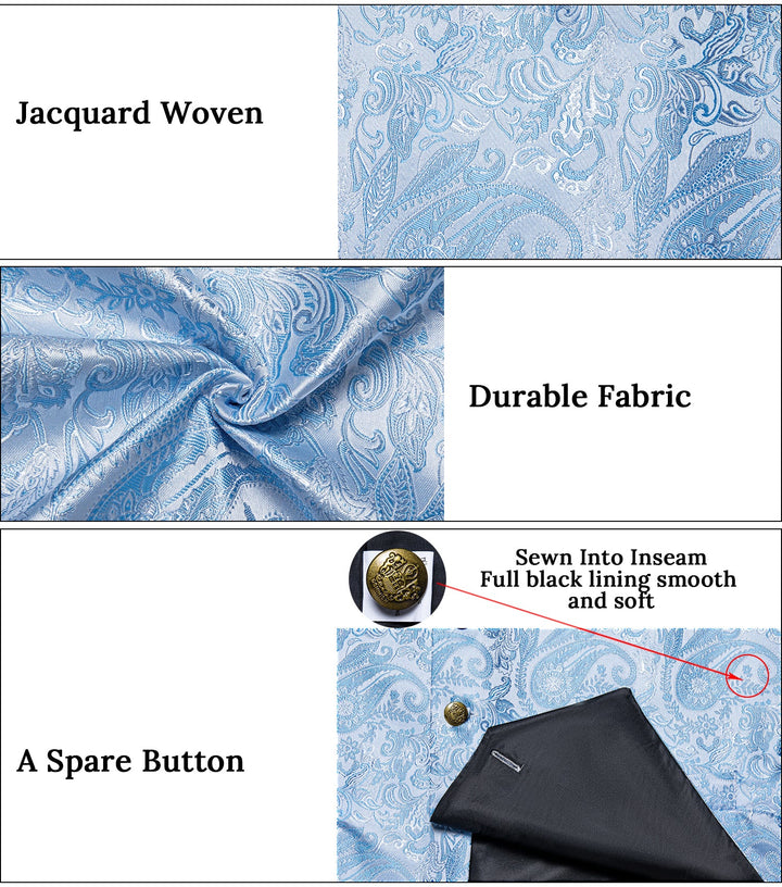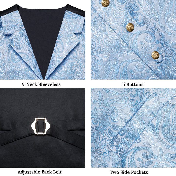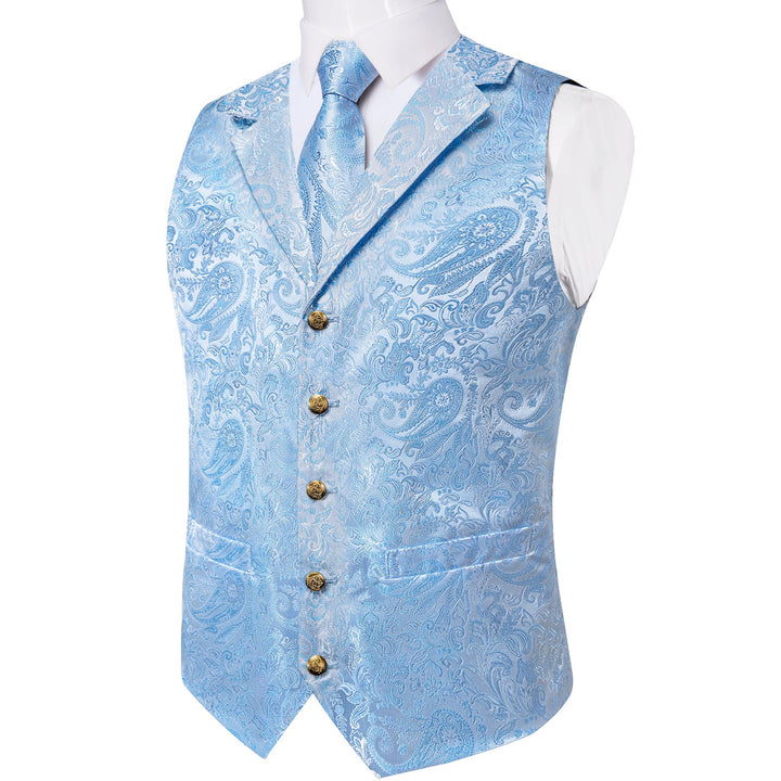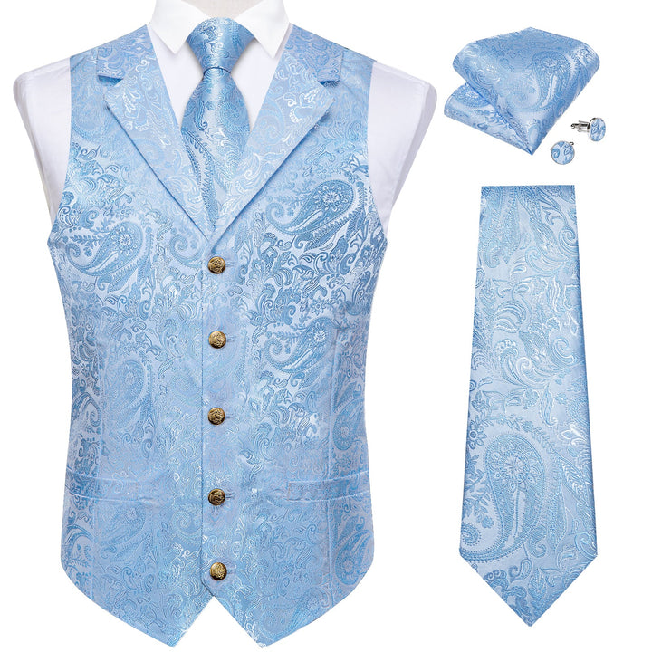 Ties2you Baby Blue Collar Vest Paisley Formal Suit Waistcoat Tie Hanky Cufflinks Set