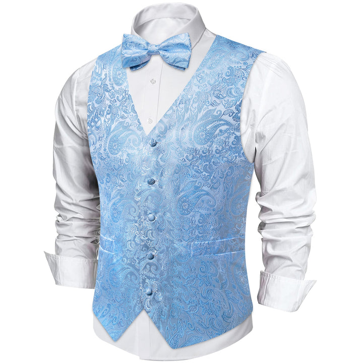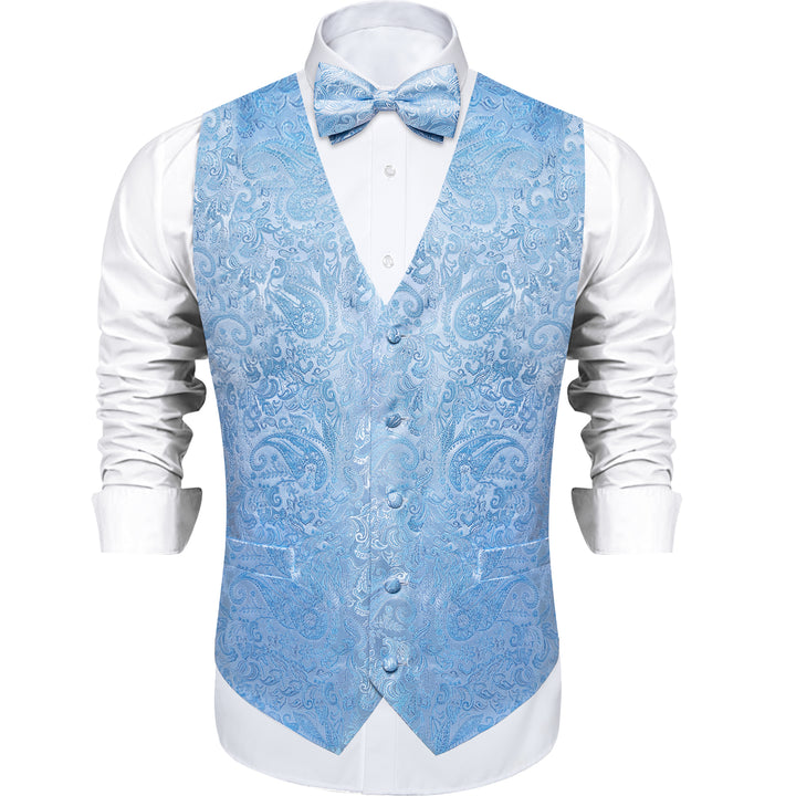Baby Blue Paisley Silk Men's Vest Single Vest