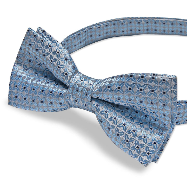 Ties2you Men's Dusty Blue Plaid Pre-tied Bow Tie Handkerchief Cufflinks Set with Lapel Pin