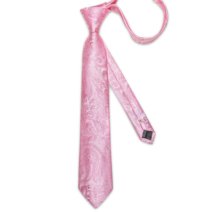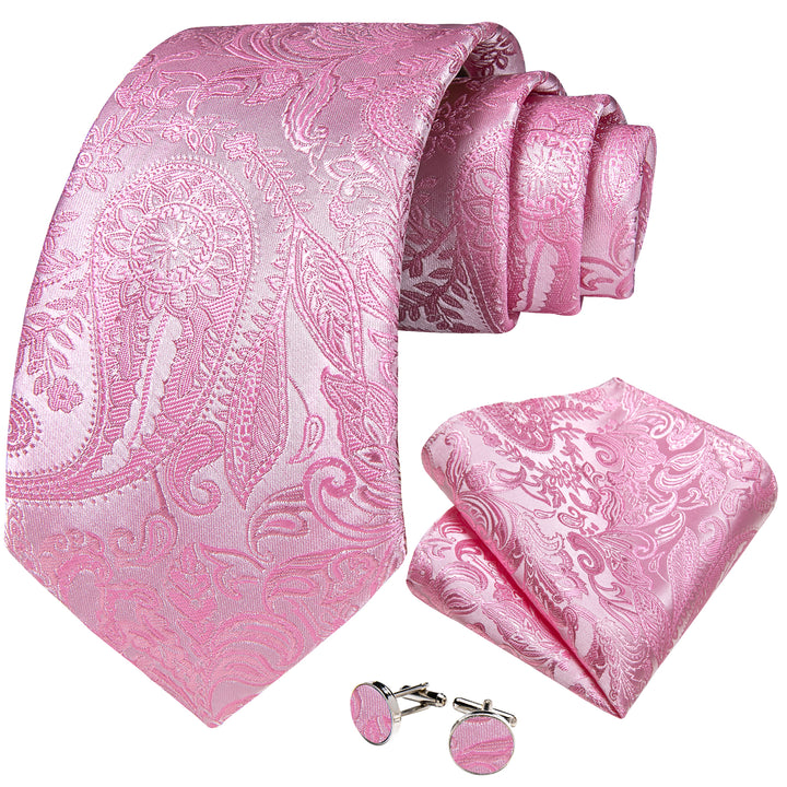 Baby Pink Paisley Silk Men's Necktie Pocket Square Cufflinks Set
