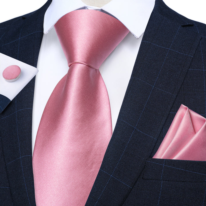 Baby Pink Pure Satin Solid Necktie Pocket Square Cufflinks Set