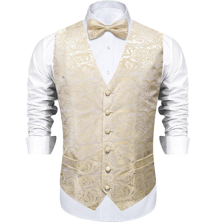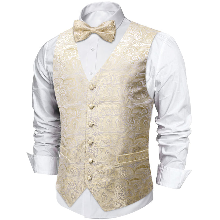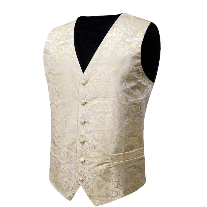 Silver Champagne Paisley Jacquard Silk Men's Vest
