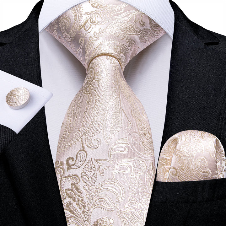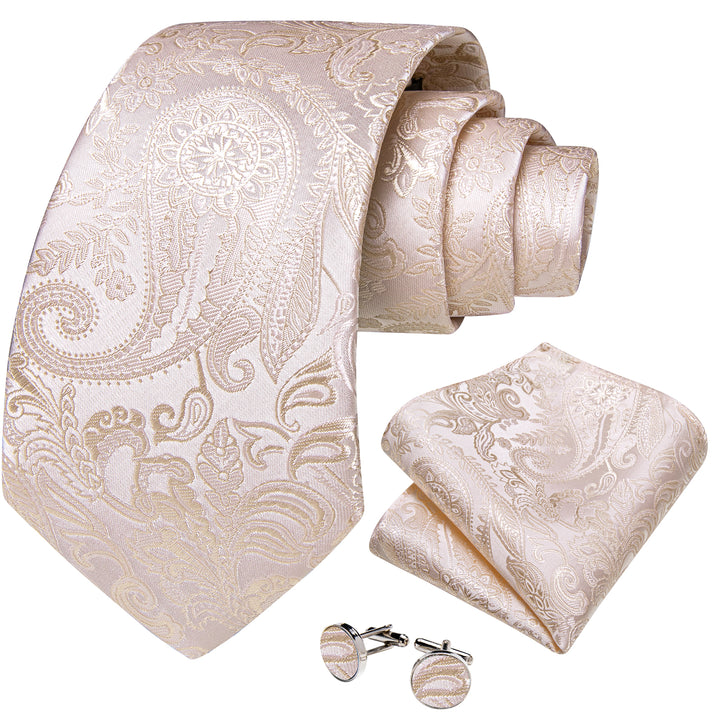 Ties2you Paisley Suit Necktie Champagne Wedding Formal Tie Pocket Square Cufflinks Set