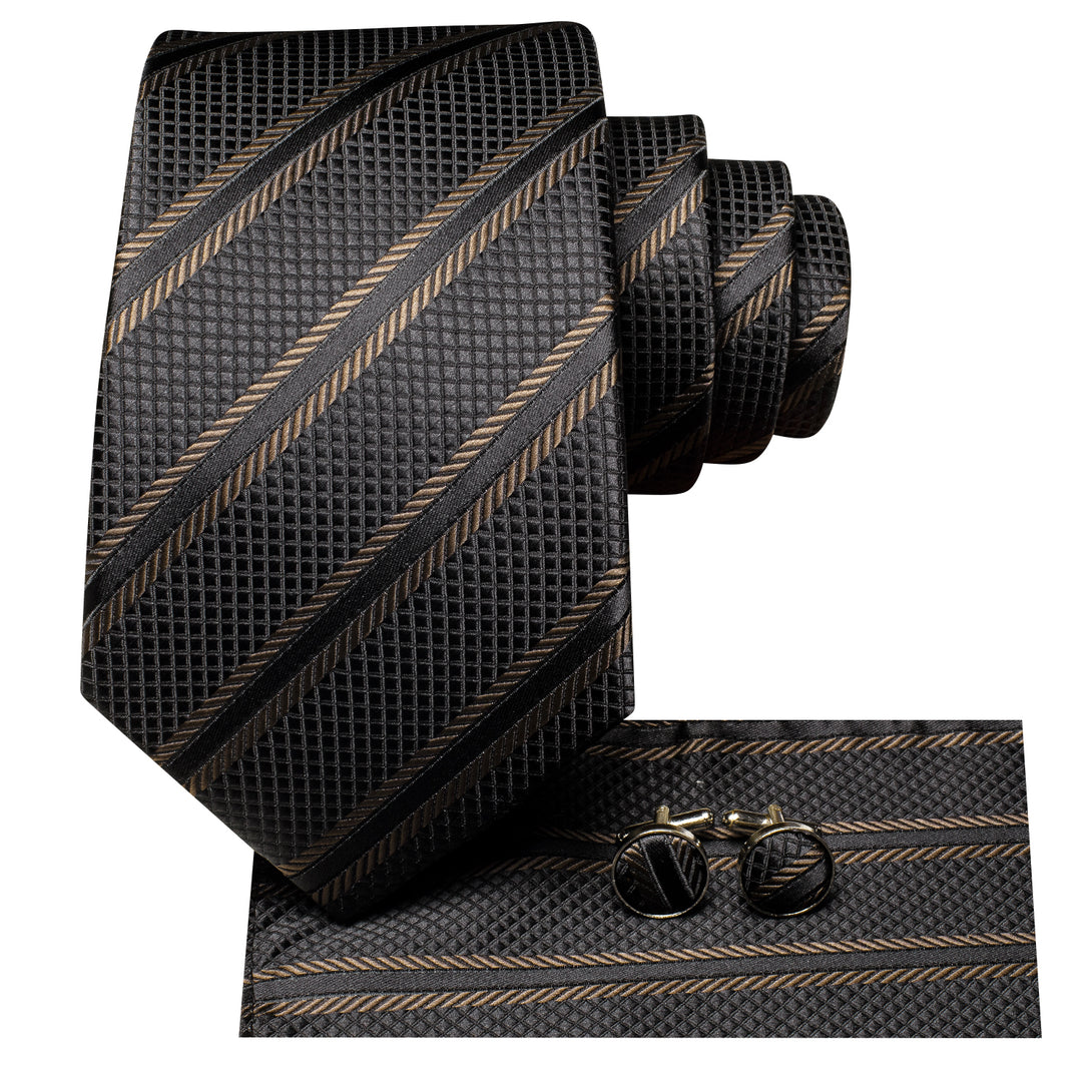 Ties2you Mens Brown Silk Tie Formal Brown Suit Necktie Hanky Cufflinks Set