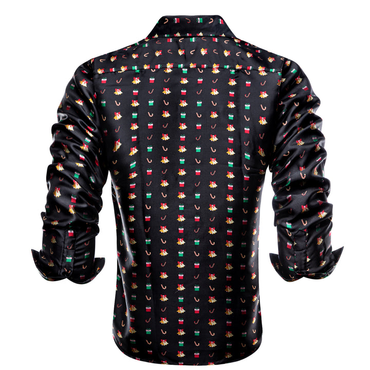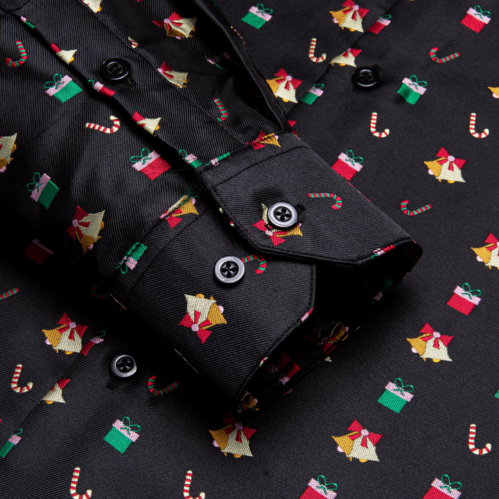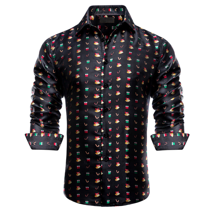 Black Christmas Red Candy Cane Novelty Men's Long Sleeve Shirt