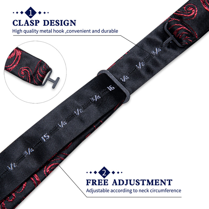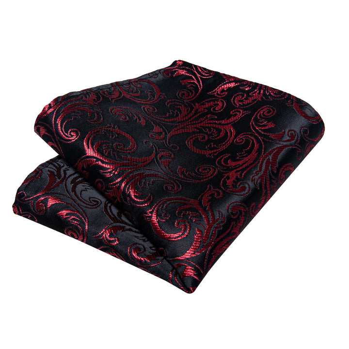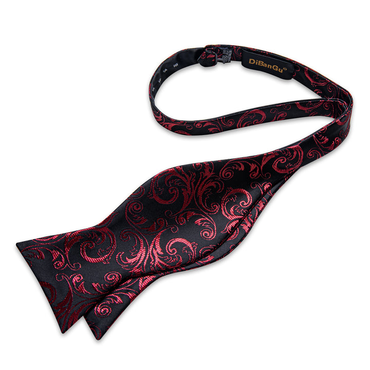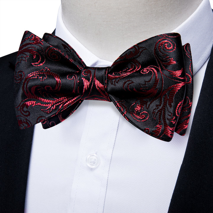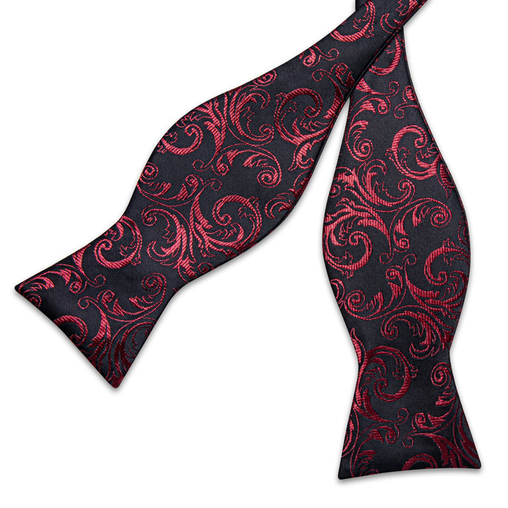 Ties2you Red Floral Bowtie Self-tie Black Bow Tie Pocket Square Cufflinks Set for Men