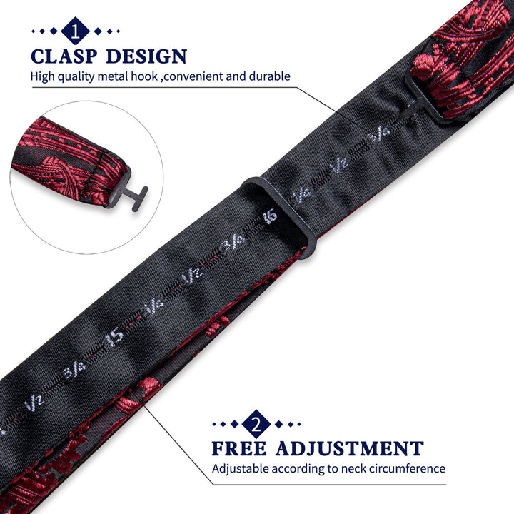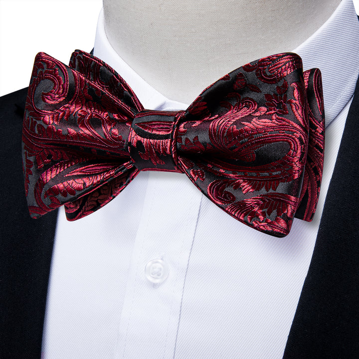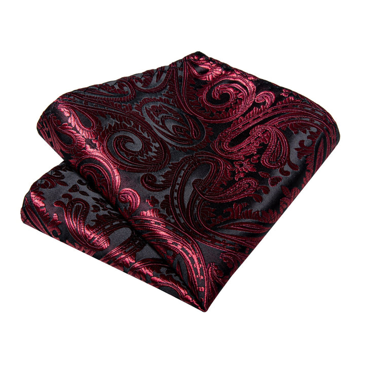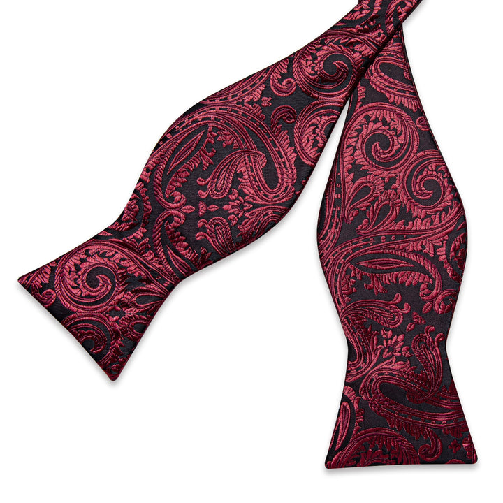 Black DarkRed Novelty Self-tied Bow Tie Pocket Square Cufflinks Set