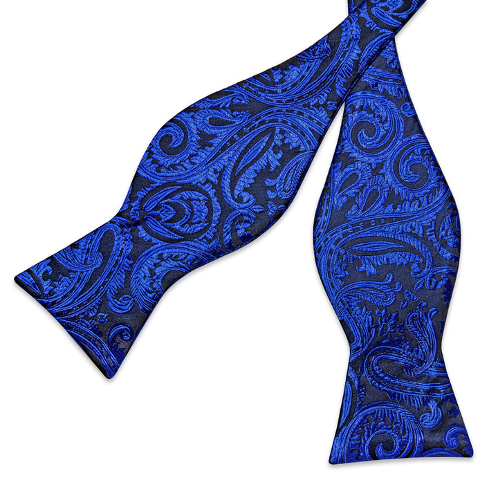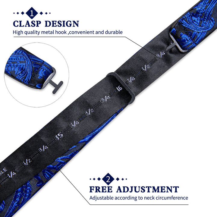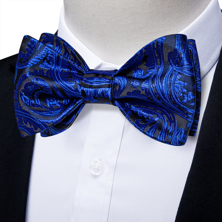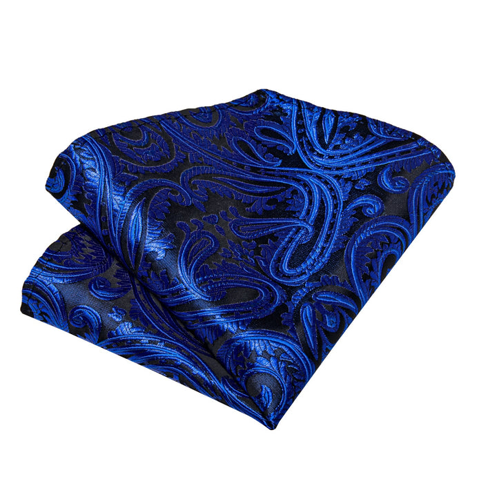 Black DeepBlue Paisley Self-tied Bow Tie Pocket Square Cufflinks Set