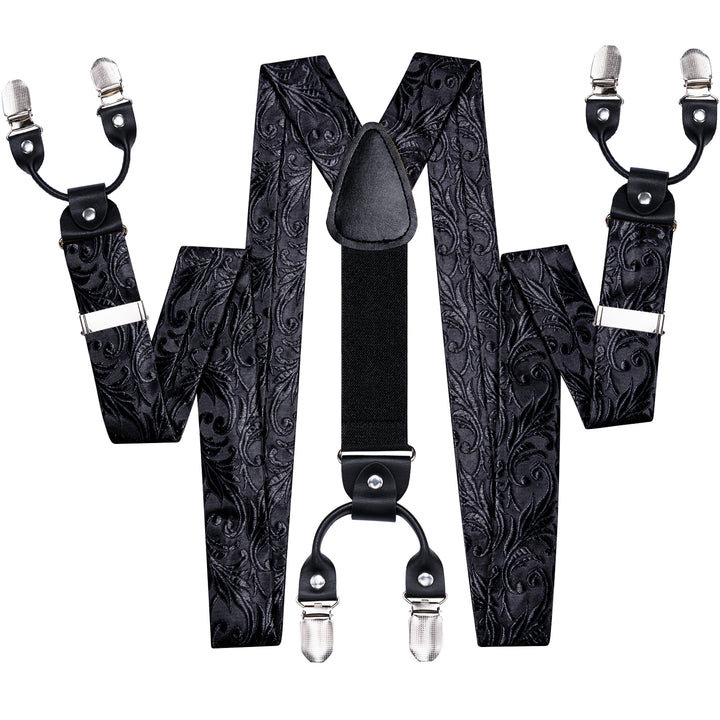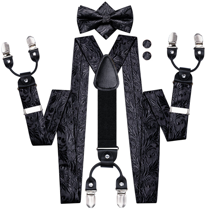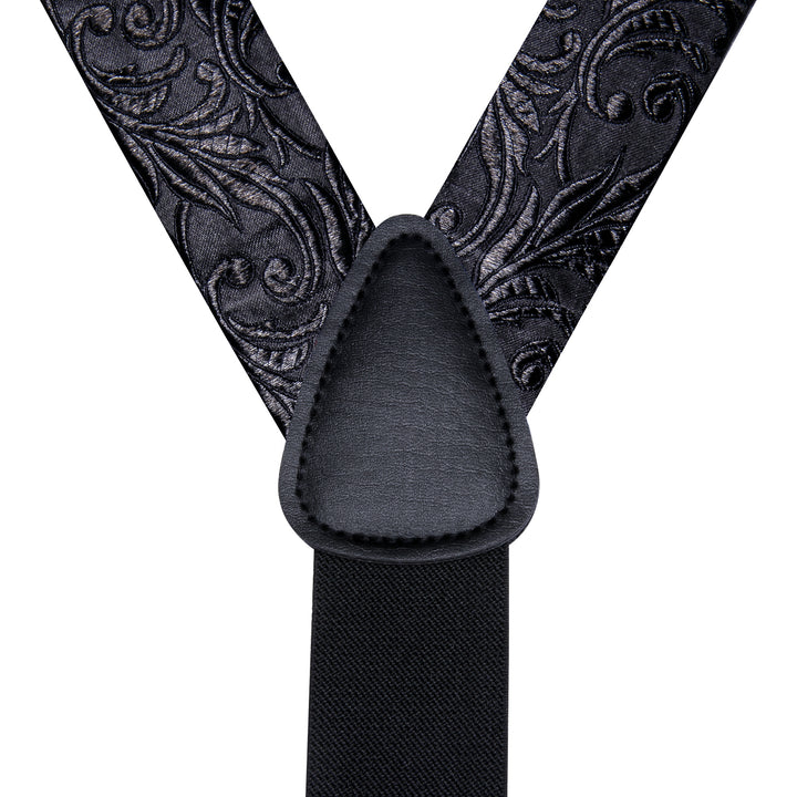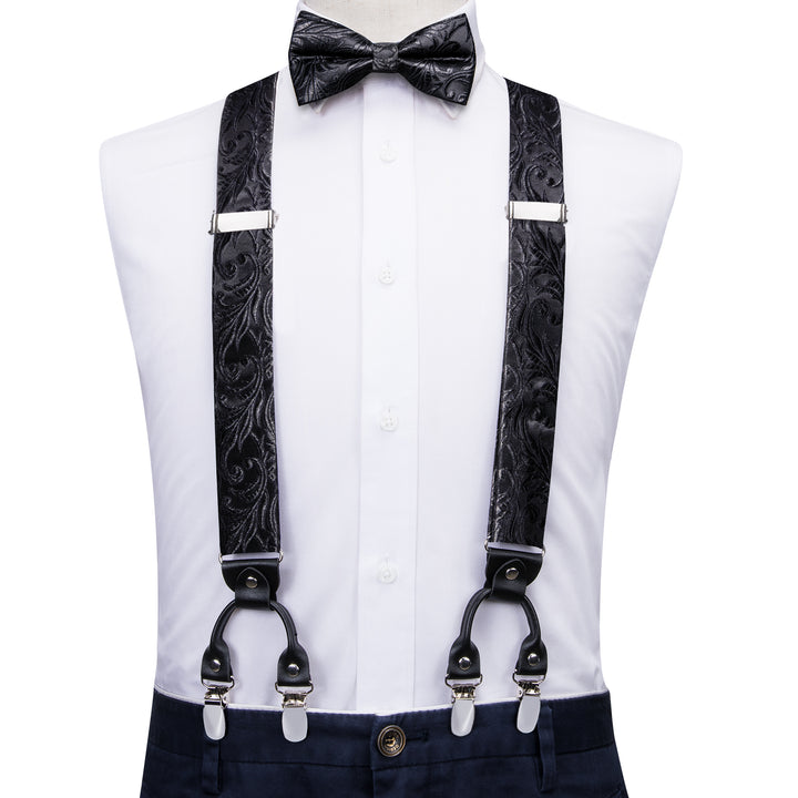 Black Floral Y Back Brace Clip-on Men's Suspender with Bow Tie Set